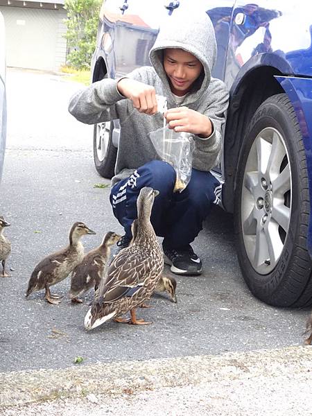 11/5(週六)我們入住王家牧場後,趁他們準備房間和晚餐,我們開車去15分鐘的羅托魯瓦市區泡溫泉。「玻里尼西亞」湖邊溫泉是當地著名景點,有很多個溫泉池,旅遊書多有介紹,不再此贅言,放幾張照片就知道景色宜人了!青青在門口遇上幾隻小鴨,可開心的! 不過因為這裡太有名了,觀光客很多,所以一定要洗價格高的「湖邊池」(一人48紐幣)否則要不是看不到湖景,就是團客吵嚷的厲害。這一路旅行,發現中國、韓國人、西班牙人嗓門最大,到哪裡都扯開嗓門當自家客廳;至於安靜無聲的一定是日本人。華裔大馬年輕人很多;大陸散客水準則跟團客差距頗大!那天一群韓國大媽就被管理員糾正好幾次「浴巾不可下水」。而中國團一進來,原本乾淨安靜的更衣室一下子混亂不堪,難怪紐西蘭人對亞洲人印象不佳。不過很令人驚訝的是,很多紐西蘭人都會問我是「Chinese」,還是「Taiwanese 」這倒是令我蠻驚奇的,因為我的經驗是西方人通常都弄不清楚,還常常以為「台灣」是「泰國」。此外,離開王家牧場後,我們去了附近一個自然湧泉「hangarua」,那裡有加州來的紅巨木樹林,環境清幽。