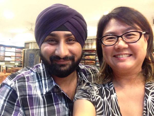 店員也是錫克人。他的一頭頭髮髮長過腰,隨身攜帶一根針狀髮梳,把頭髮篦進頭巾。他說他有各種顏色的頭巾可以配衣服呢!