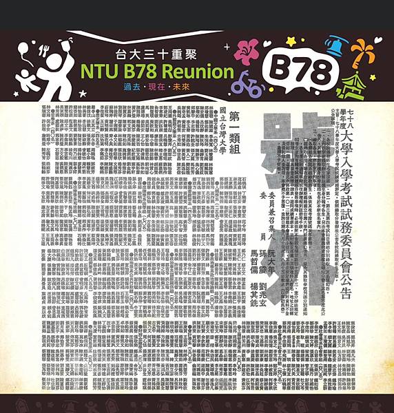 我們中文系出席了11位,正好一桌!主辦同學不但張羅了很多表演活動,還做了許多拍照背板,邀請了當年校長孫震錄了一段影片,播放了同學們的校園照片,甚至還找到並張貼了當年的榜單!