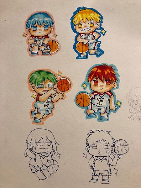 她每次畫作業時,都是左邊一張紙、右邊一張紙。右邊是作業,畫一畫累了,就畫左邊—-自己準備做貼紙的漫畫。